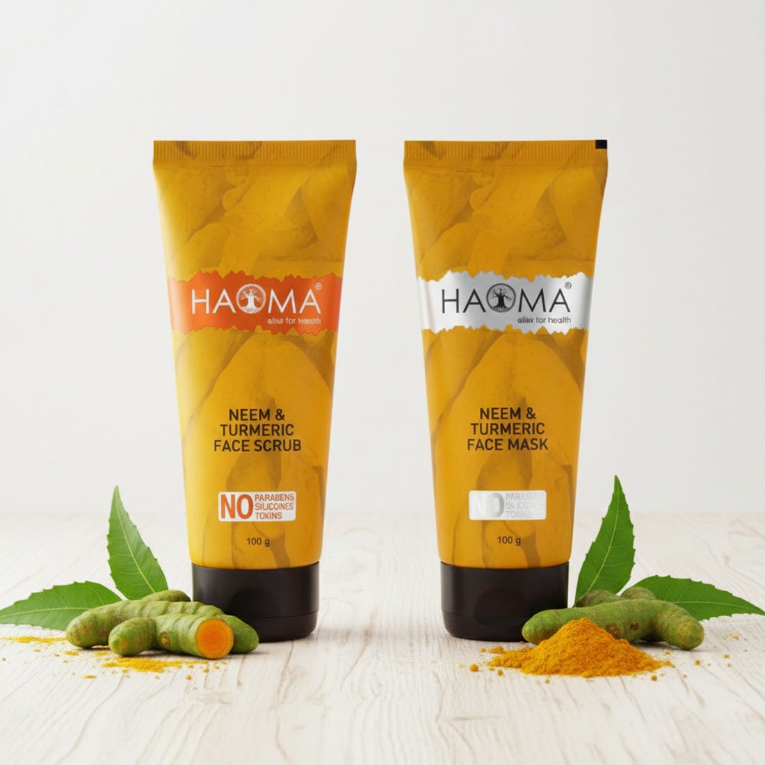 Haoma Ayurvedic Neem Turmeric Scrub And Face Pack Combo 100g Each