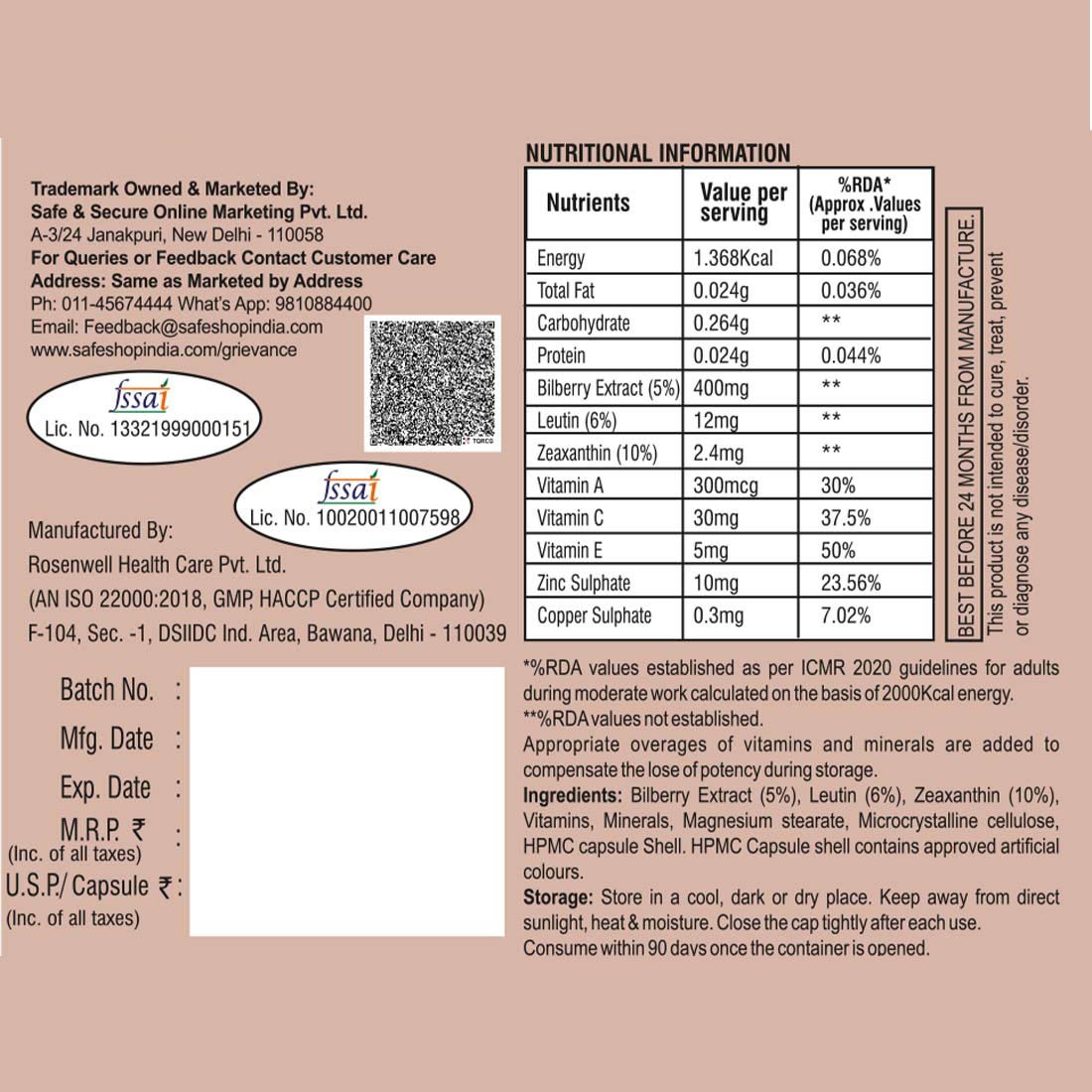 Haoma Eye Shield – 90 Capsules is a premium eye-health capsule enriched with Berry Extract, Lutein, and Zeaxanthin to support vision clarity and protect against oxidative stress. With added vitamins and minerals for maintained potency, it helps promote overall eye wellness and long-term visual comfort.